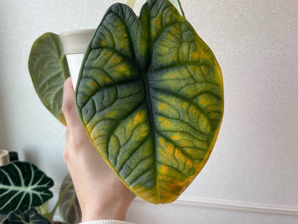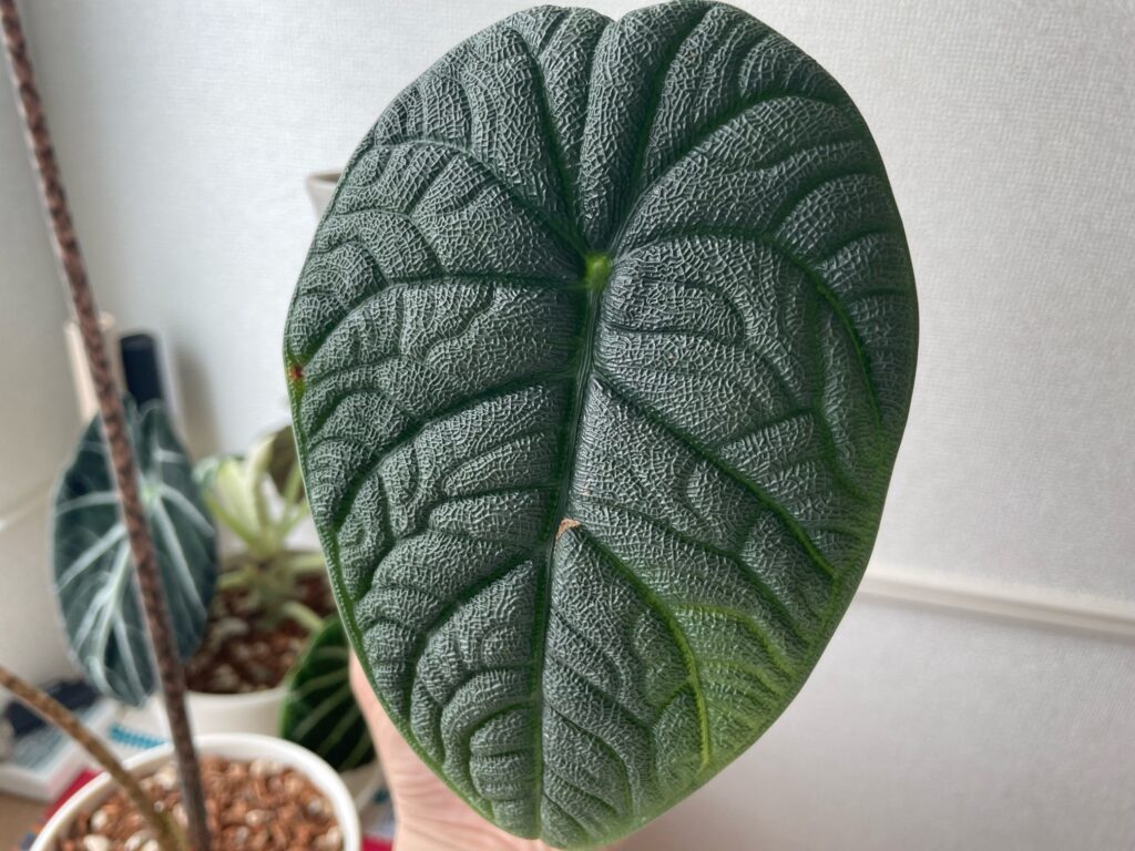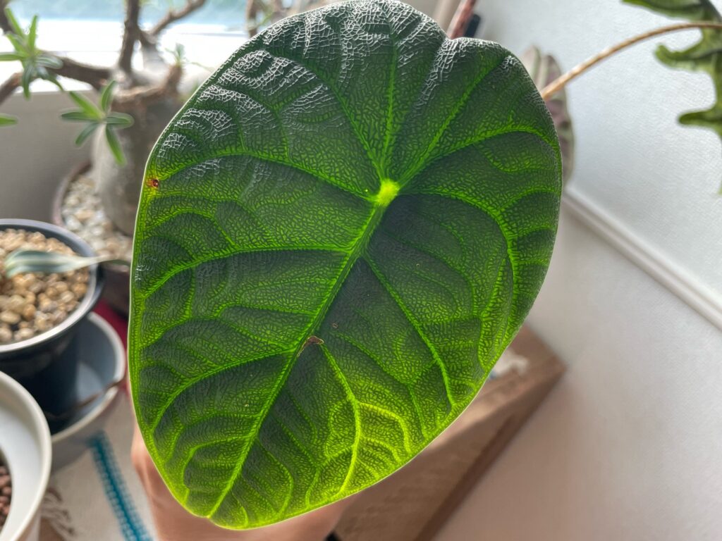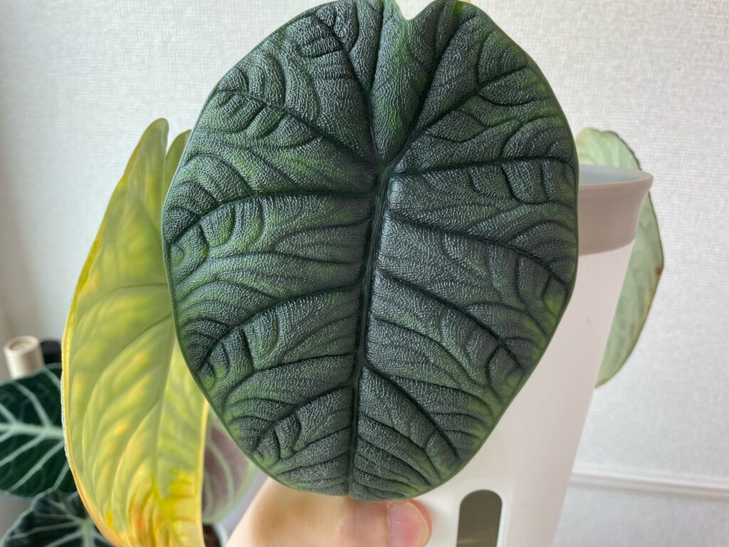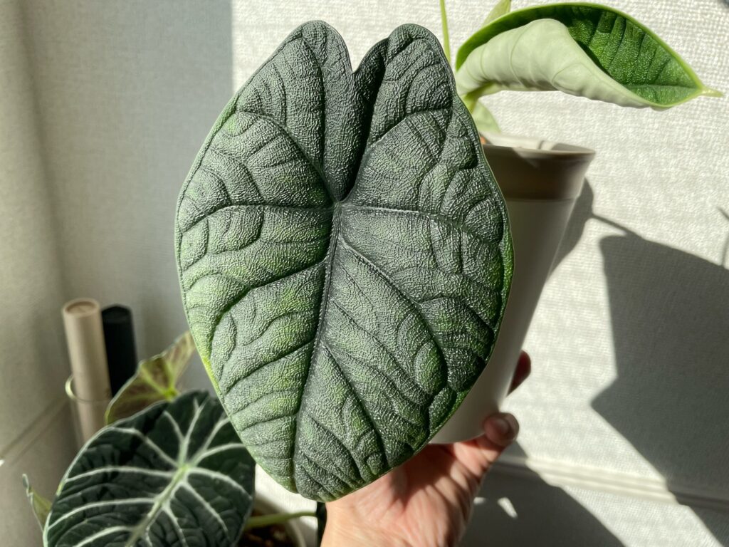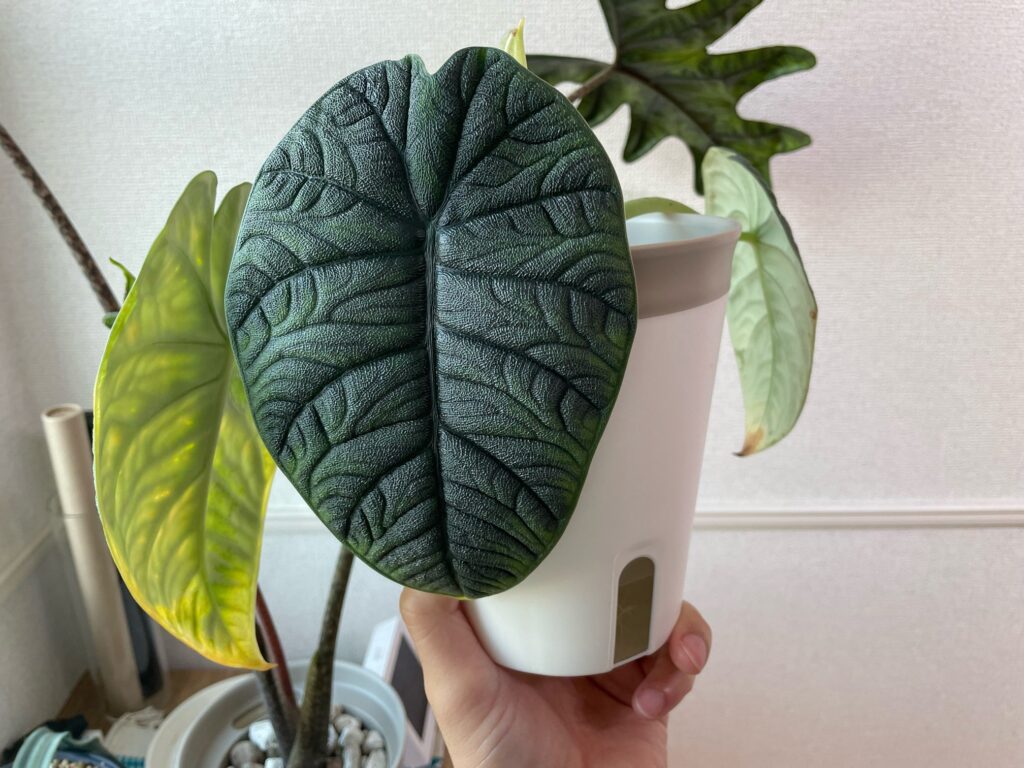 やはり、アロカシアは肥料が大好きなようで、肥料をちゃんと与えるようにしてから、すごく調子が良く、力強い葉っぱを広げてくれるようになりました。