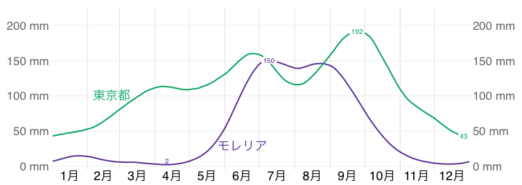 グラフを見るとモレリアは明確に雨季と乾季がある事が分かります。