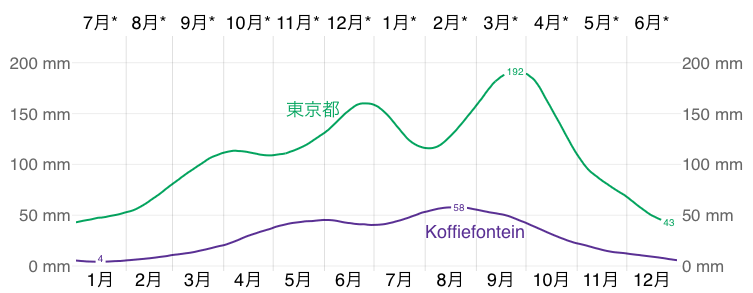 日本と比べると明らかに降雨量が少ないのが分かります。