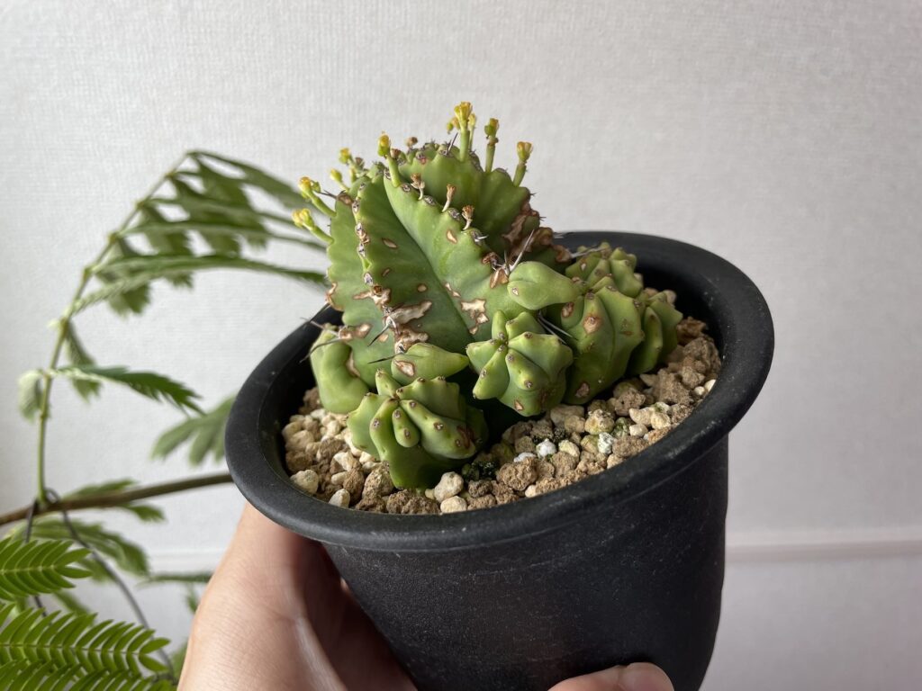 育ててる感覚としてはフルチコーサは多肉ユーフォルビアの中では少し株焼けしやすい品種だと思います。