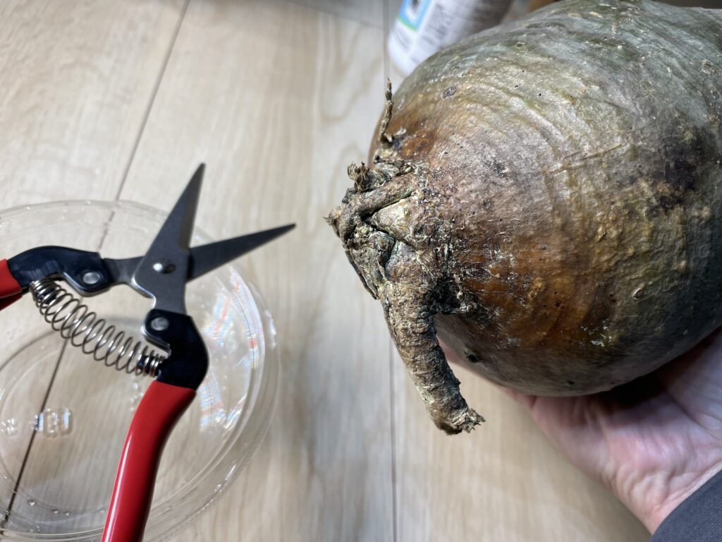 発根管理をするために根をカットして、腐っていそうな黒い部分を取り除きます