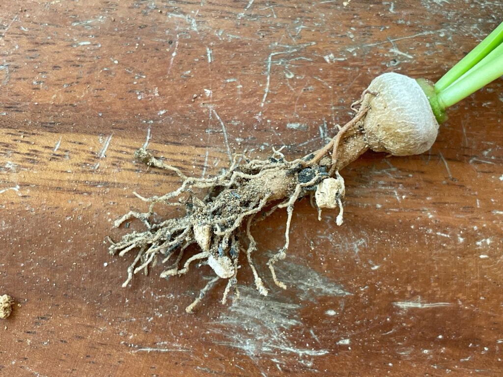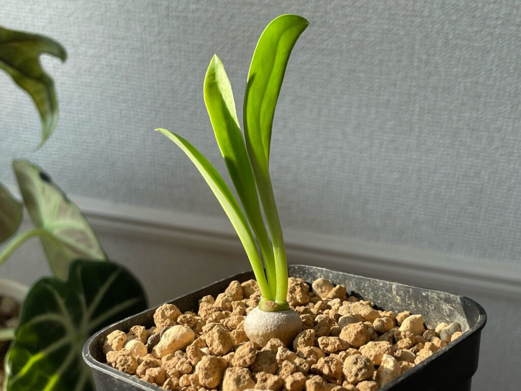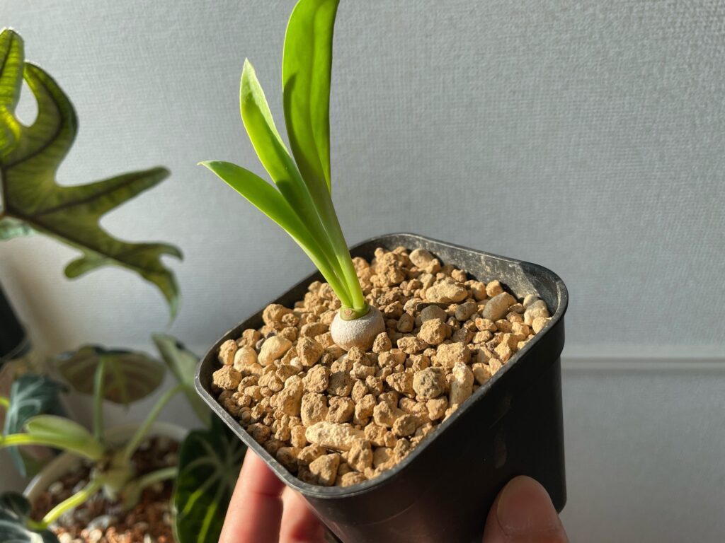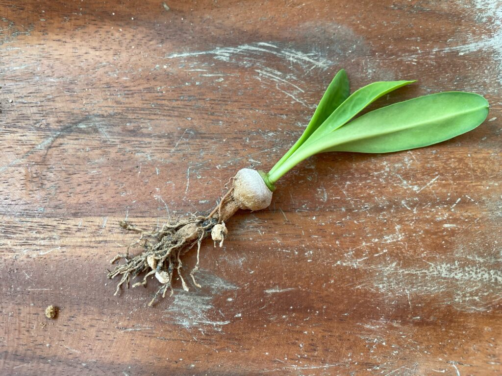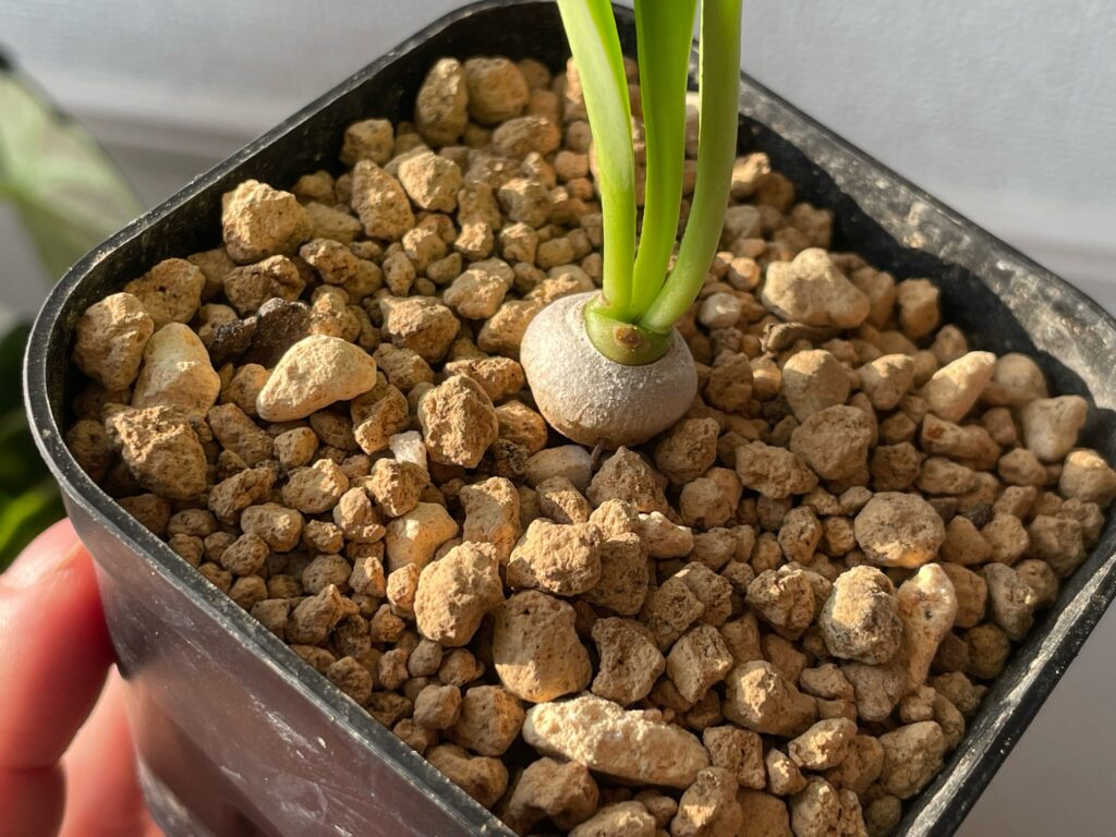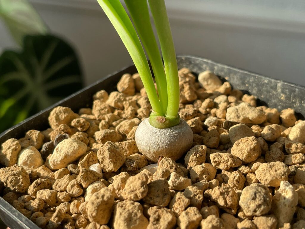 株が小さいうちは綺麗な丸の塊茎部ですが、株が成熟するにつれて棒筒状に成長する
