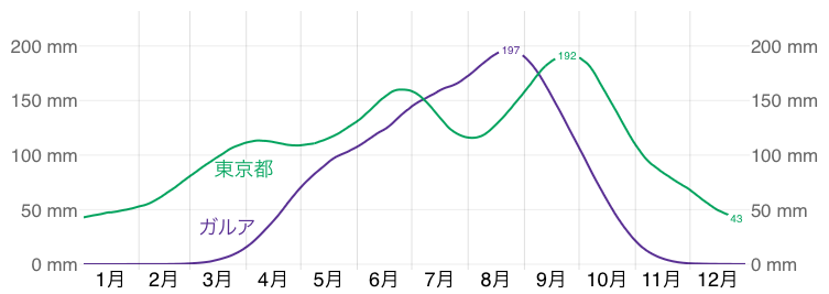 グラフを見ると明確に雨季と乾季が分かれているのが分かります。