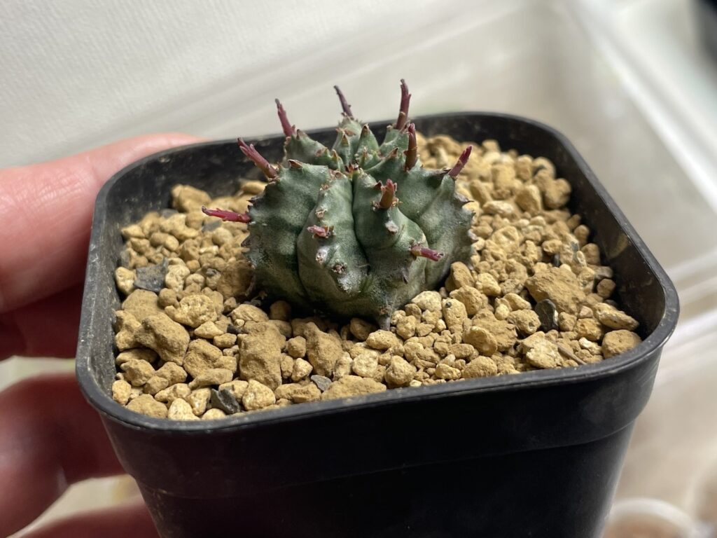ユーフォルビア・ホリダは根の張りがそこまで盛んではないので2~3年を目安に植え替えを行いましょう。
